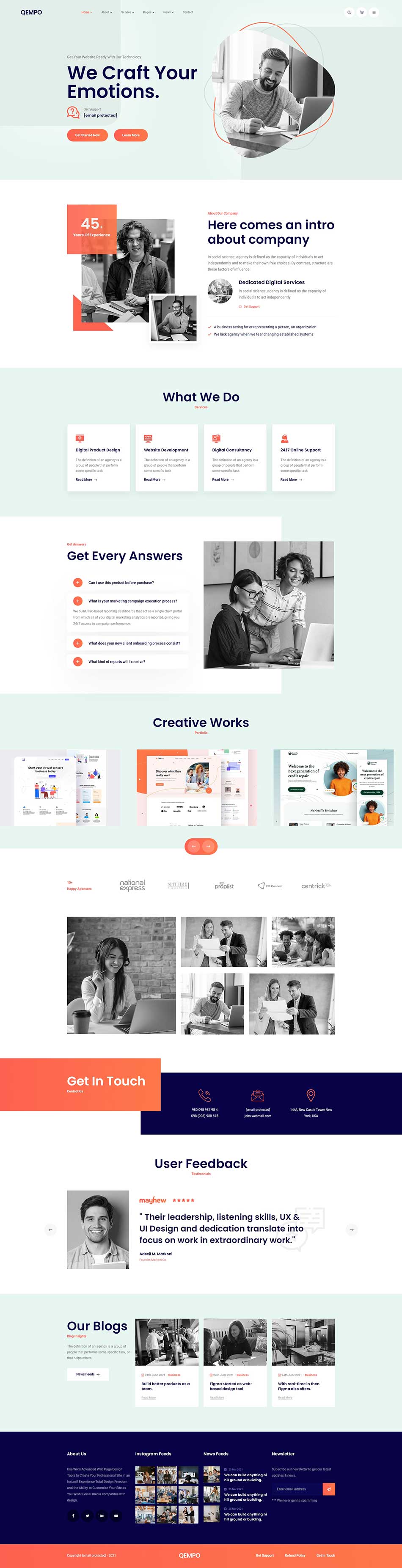 多頁面多款首頁樣式,時尚的設計,Bootstrap5框架,代碼簡單友好易于修改,跨瀏覽器兼容性 ,原生響應式自適應手機端,很棒且富有創意的布局,良好的色彩組合,該網頁模板為此類企業創建成功網站提供了所需的所有必要頁面和功能。
