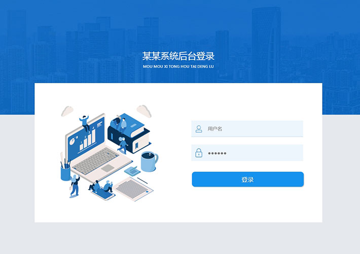 藍色的軟件辦公系統后臺登錄頁面html模板下載。輸入用戶名,密碼,登錄頁面代碼。